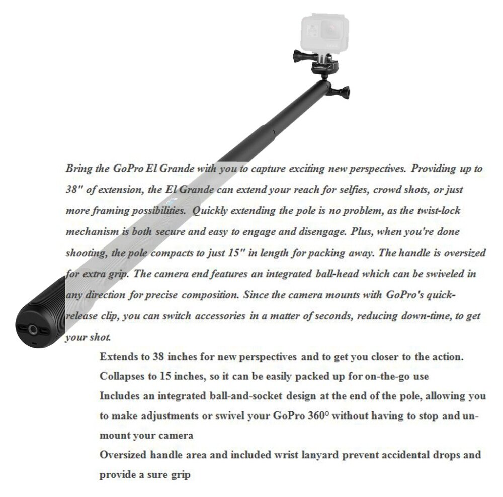 GOPRO EL GRANDE 38″ EXTENSION POLE, BLACK AGXTS-001 CAMERA ACCESSORY MOUNT – ORIGINAL GOPRO PRODUCT