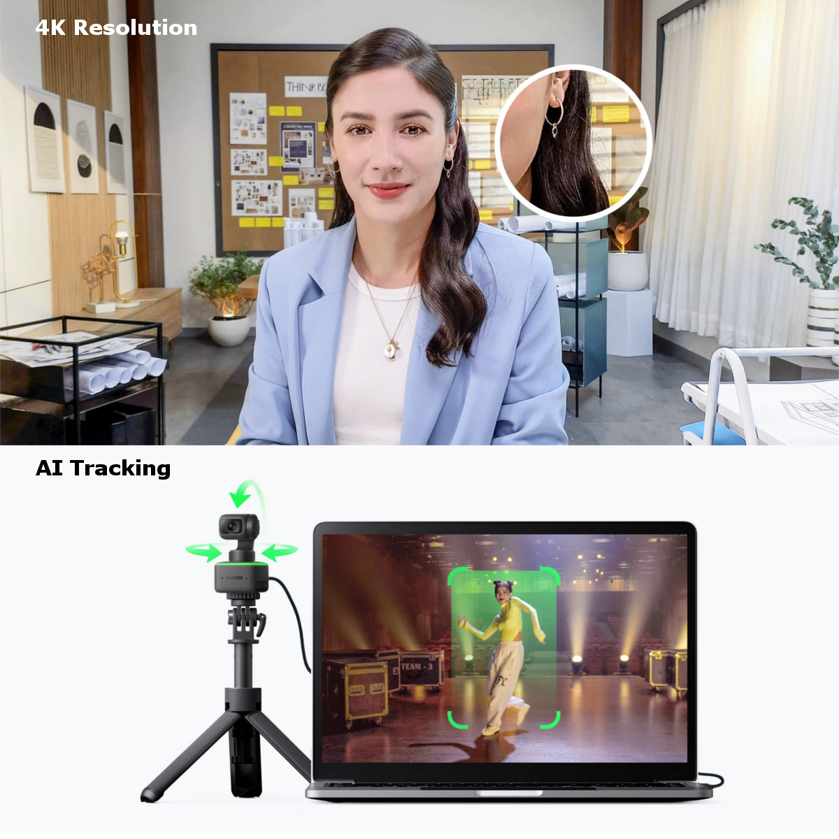 Insta360 Link PTZ 4K Webcam with 1/2″ Sensor | AI Tracking | Gesture Control | Noise-Canceling Microphones