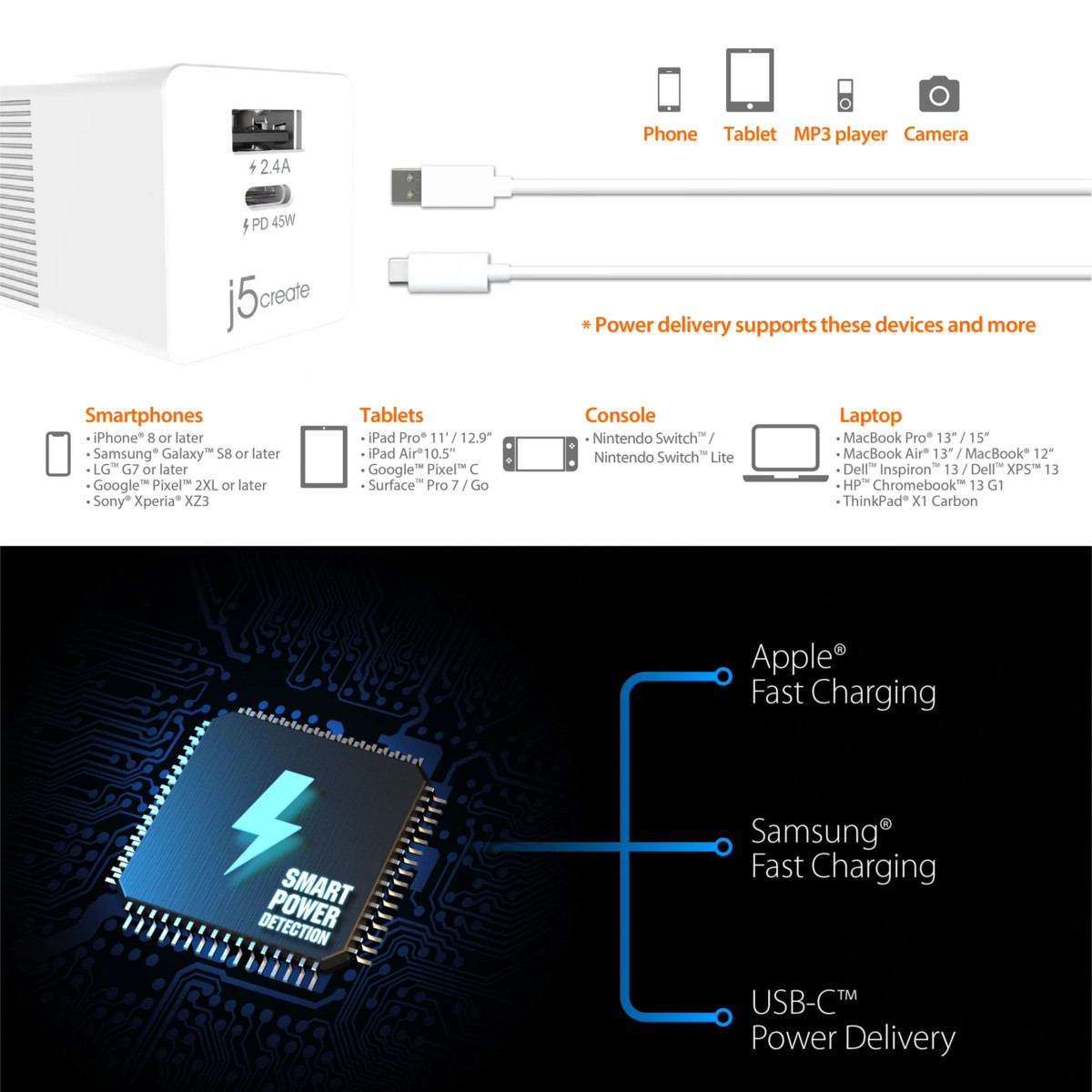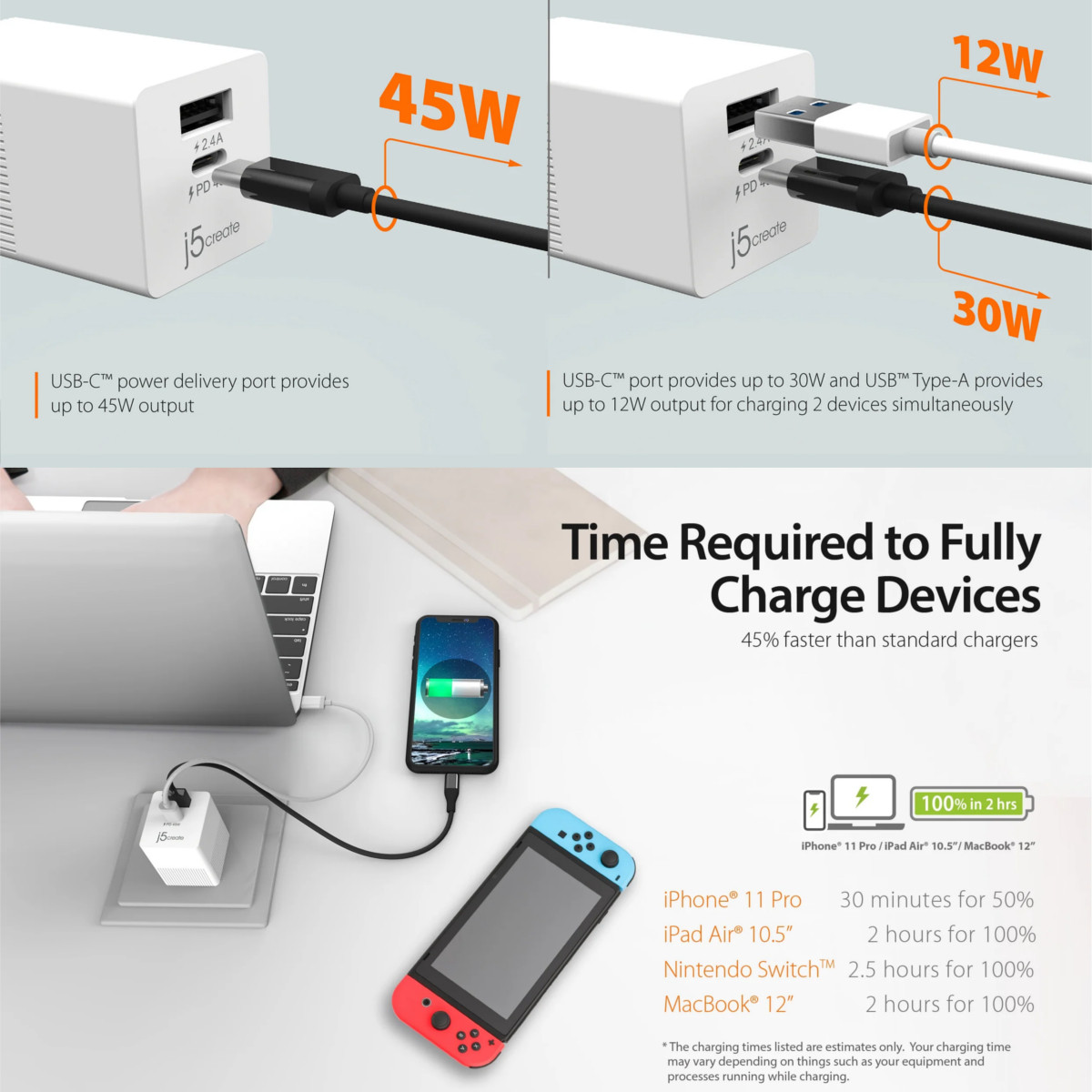 J5 create 45W 2-port dynamic PD USB-C mini charger – JUP2445