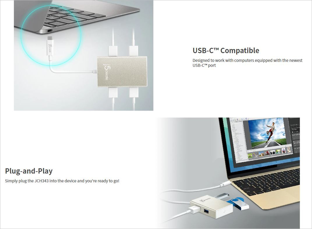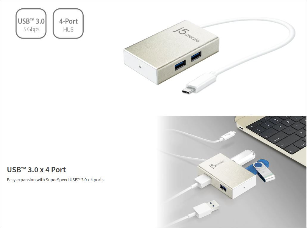 This USB-C 4-port hub expands your laptop connectivity by adding four USB Type-A ports through a single USB-C or Thunderbolt 3 port. By converting your laptop’s USB-C port into four USB Type-A ports, you can continue to use all of your existing USB devices such as your mouse, keyboard and flash drive.