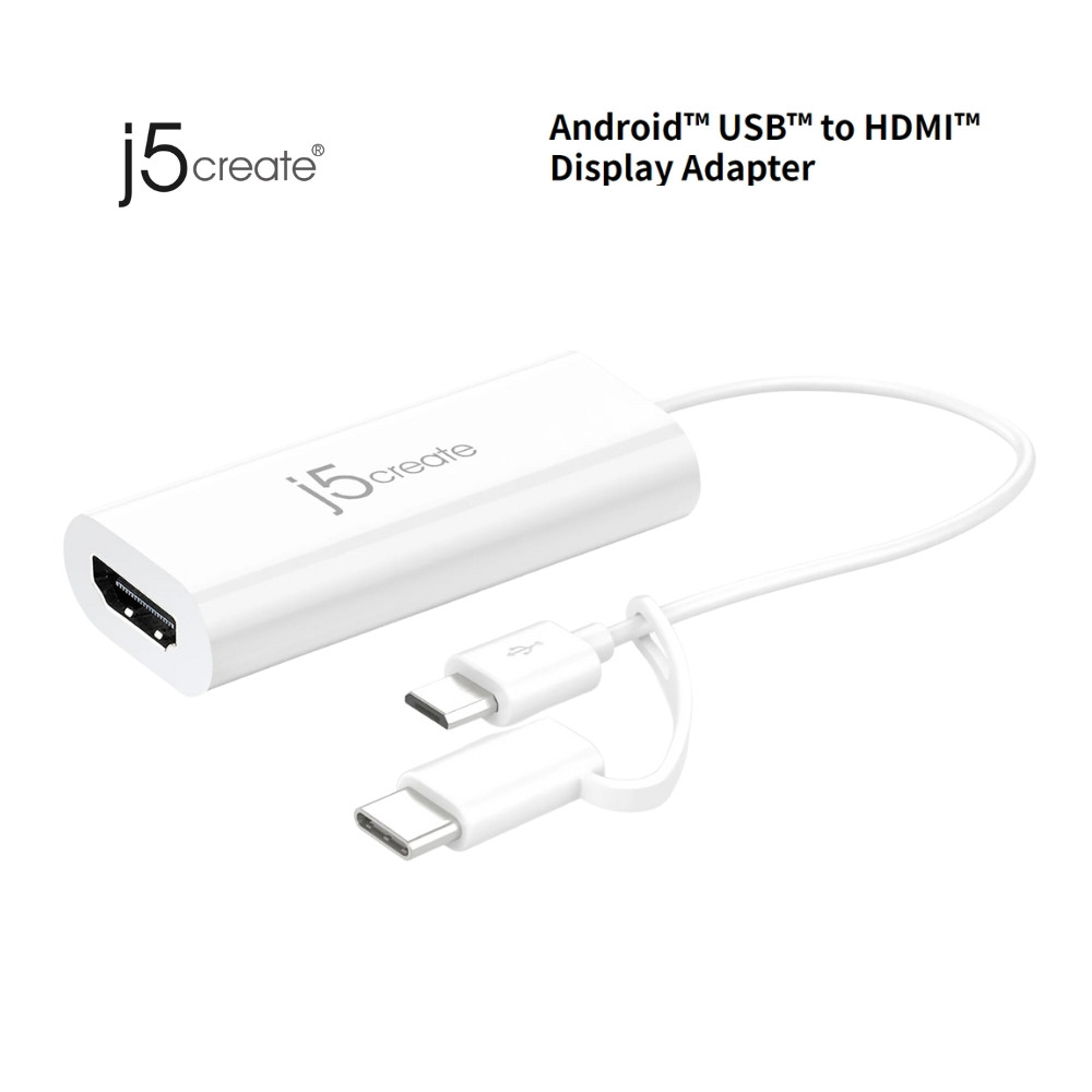 The j5create Android USB™ Display Adapter acts as an external video card for your Android Mobile Phone. It allows you to add an additional monitor/display through your USB™ MicroB port or Type-C Port. Simply load the Google® Play app ("j5 Display Adapter" App), plug the adapter into the USB™ Micro-B port or Type-C port, then plug the VGA or HDMI™ monitor cable into the adapter and you are ready. With "Plug & Play" functionality between your Android™ mobile phone and 2nd monitor, you will be able to create a new visual environment in seconds.