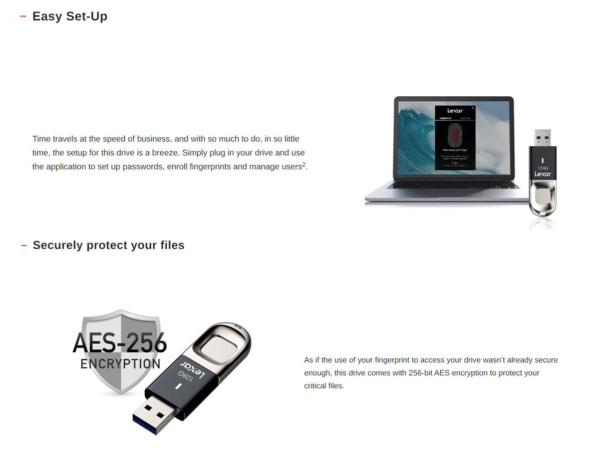 Time travels at the speed of business, and with so much to do, in so little time, the setup for this drive is a breeze. Simply plug in your drive and use the application to set up passwords, enroll fingerprints and manage users (2).