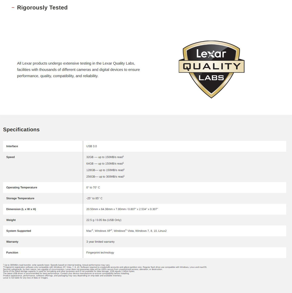 Lexar JumpDrive Fingerprint F35 USB 3.0 Flash Drive