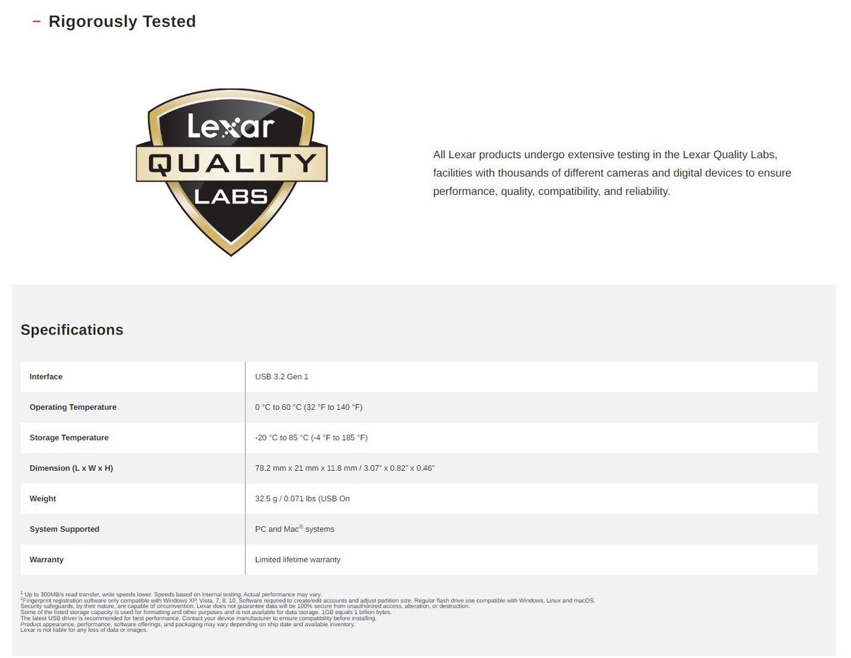 All Lexar products undergo extensive testing in the Lexar Quality Labs, facilities with more than 1,100 digital devices, to ensure performance, quality, compatibility, and reliability.