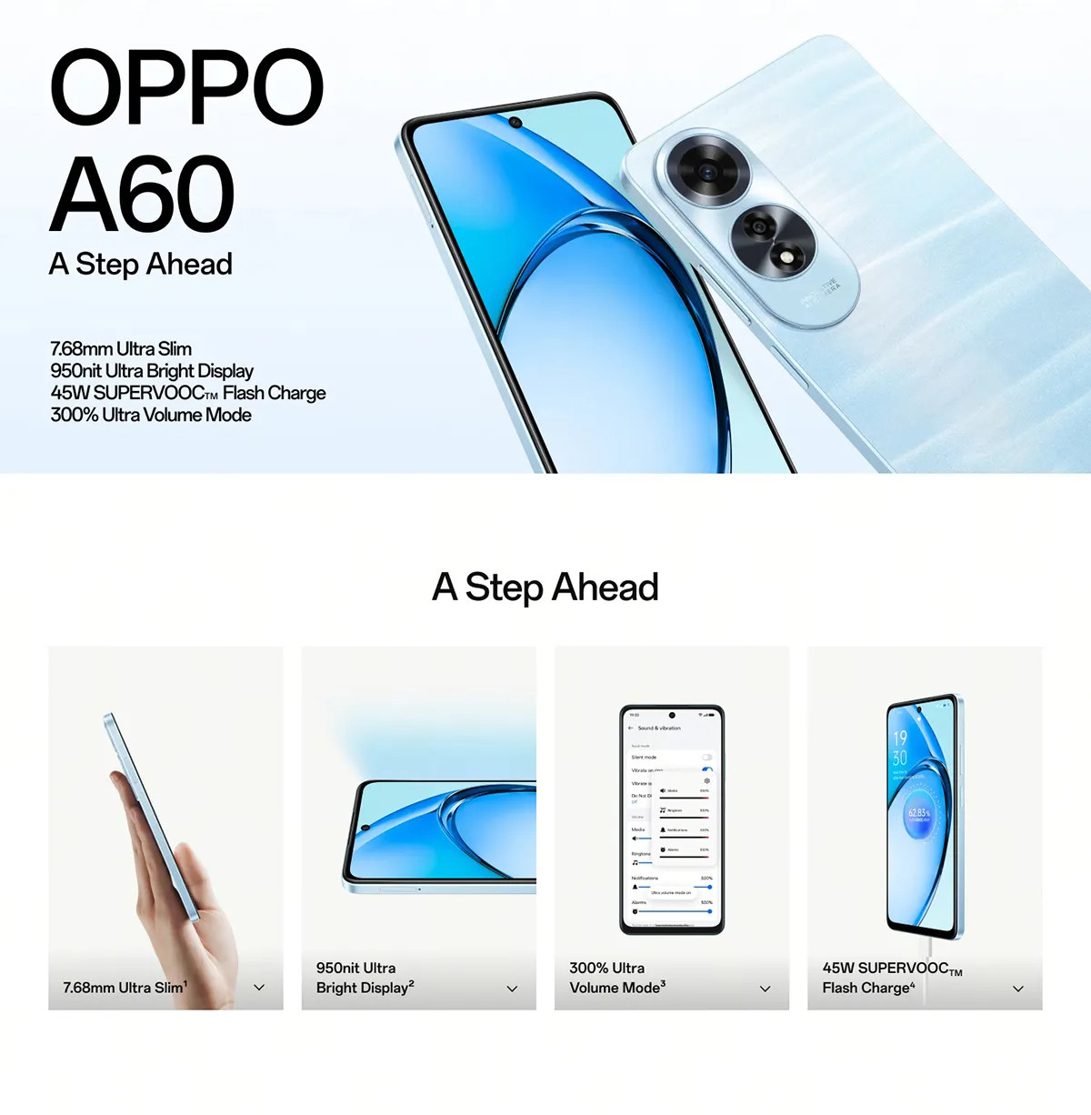 OPPO A60 Smartphone | 45W SUPERVOOC Flash Charge | Dual Stereo Speakers