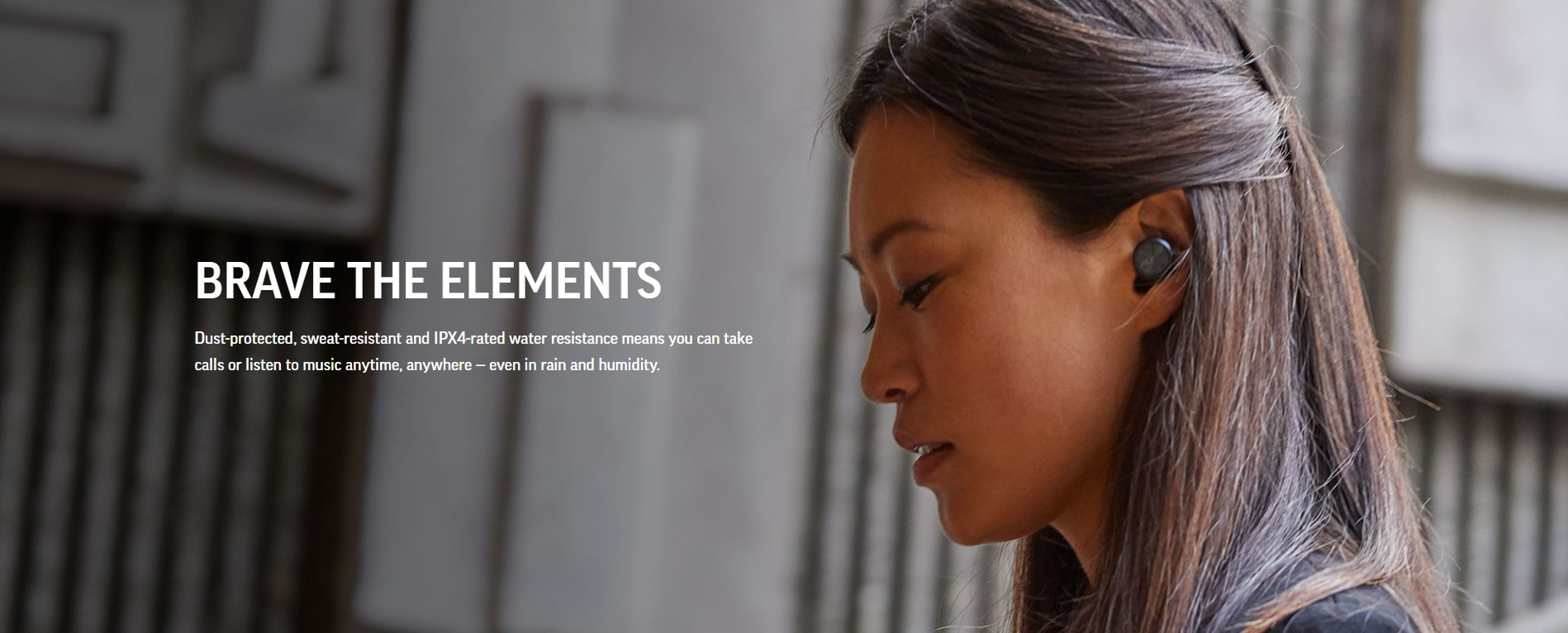 Dust-protected, sweat-resistant and IPX4-rated water resistance means you can take calls or listen to music anytime, anywhere — even in rain and humidity.