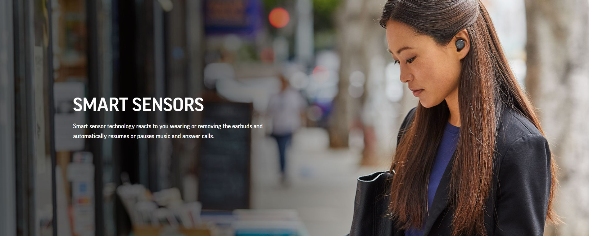 Smart sensor technology reacts to you wearing or removing the earbuds and automatically resumes or pauses music and answer calls.