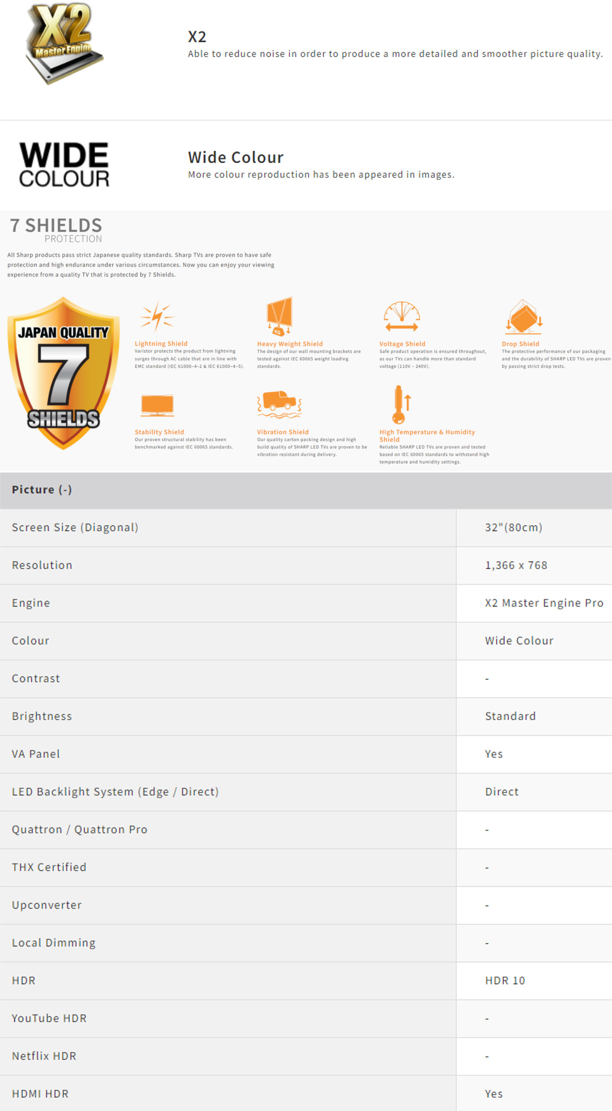 X2 Master Engine – AQUOS original processor enhances the quality of experience.