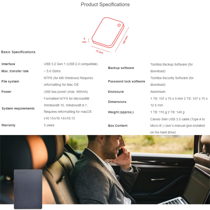 Toshiba Portable External Hard Drive CANVIO SLIM