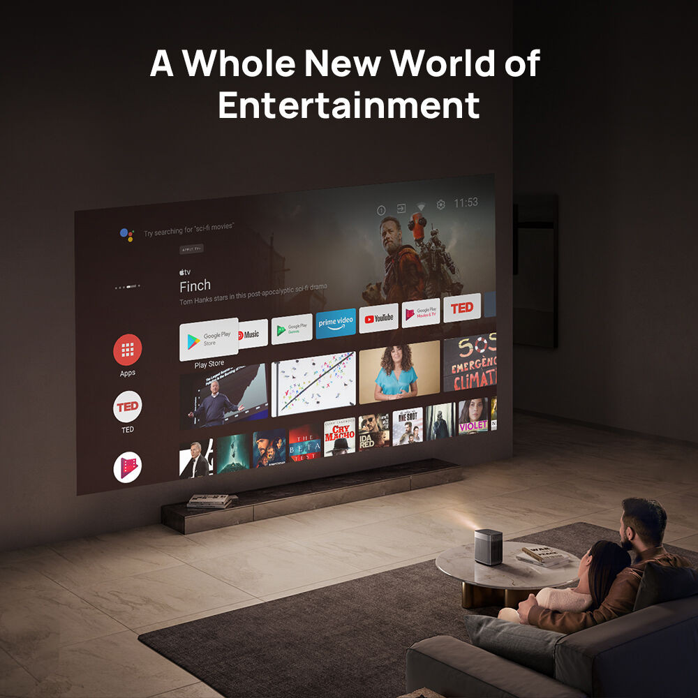 Take your home theater entertainment outside of your living room with the Halo+ 900-Lumen Full HD DLP Portable Projector from Xgimi. The compact and portable design of the Halo+ lets you enjoy movies, TV shows, and games in any room of your home, out in the backyard, or on a camping trip. The X-VUE 2.0 Image Engine delivers clarity, accurate color, and brilliant 1080p Full HD images with HDR10 support for rich dynamic contrast. The 1.2:1 throw ratio supports a recommended 60" to 120"-sized image, and thanks to built-in Google technologies, such as Android TV and Google Play, you can project content from over 5000 apps. Whatever you choose to watch or play, you can do so for up to 2.5 hours on a full charge.